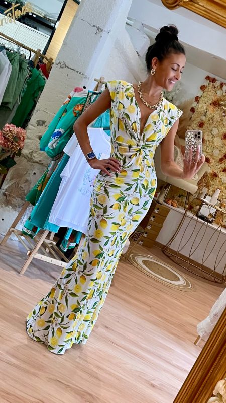 Le modèle mesure 1, 63 m et porte la taille M/L