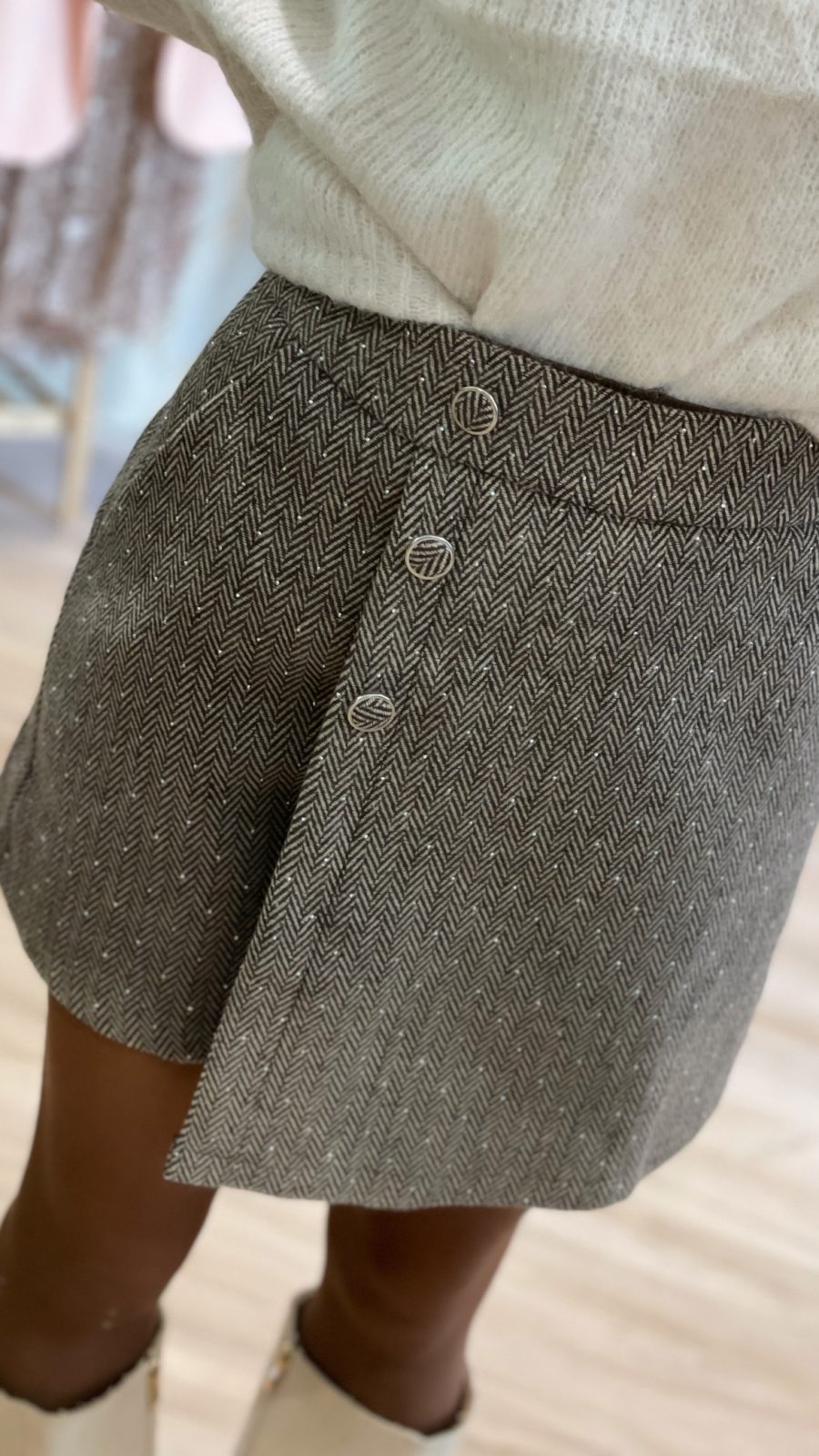 -Jupe Short -Détail Boutons et Petit Strass -Fermeture Eclair
