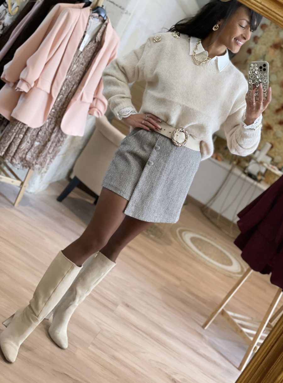 -Jupe Short -Détail Boutons -Fermeture Eclair